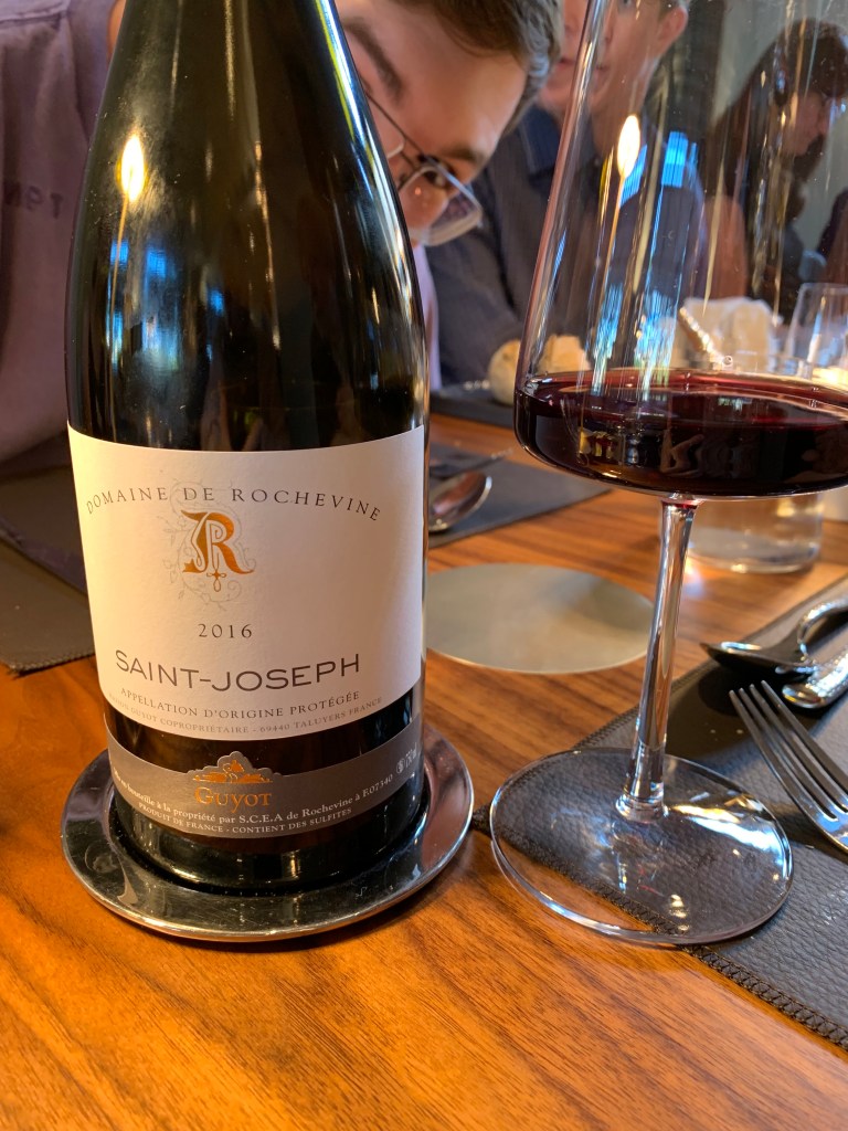 Friday, July 12. Tain-l’Hermitage and Tournon-Sur-Rhône are just across the Rhône for each other. https://fr.mappy.com/itineraire/tain-l-hermitage/tournon-sur-rhone#/8/M2/TItinerary/IFRTain-l’Hermitage%2026600|TOTournon-sur-Rhône%2007300|MOvoiture|PRcar|RI0/N151.12061,6.11309,4.83645,45.06836/Z16/ Chapoutier is one of the major négotiants in Tain, producing Côte-Rôties red wine solely from Syrah grapes, and white Hermitages only from Marsanne grapes https://en.wikipedia.org/wiki/Marsanne . On this side of the suspension bridge, Valrhona gourmet chocolate has given rise to an exclusive école for chefs specializing in chocolate desserts.This domaine is distinguished by its excellence in wine making and by having labels incorporating braille. https://en.wikipedia.org/wiki/Chapoutier In Tournon, St. Joseph is famous.